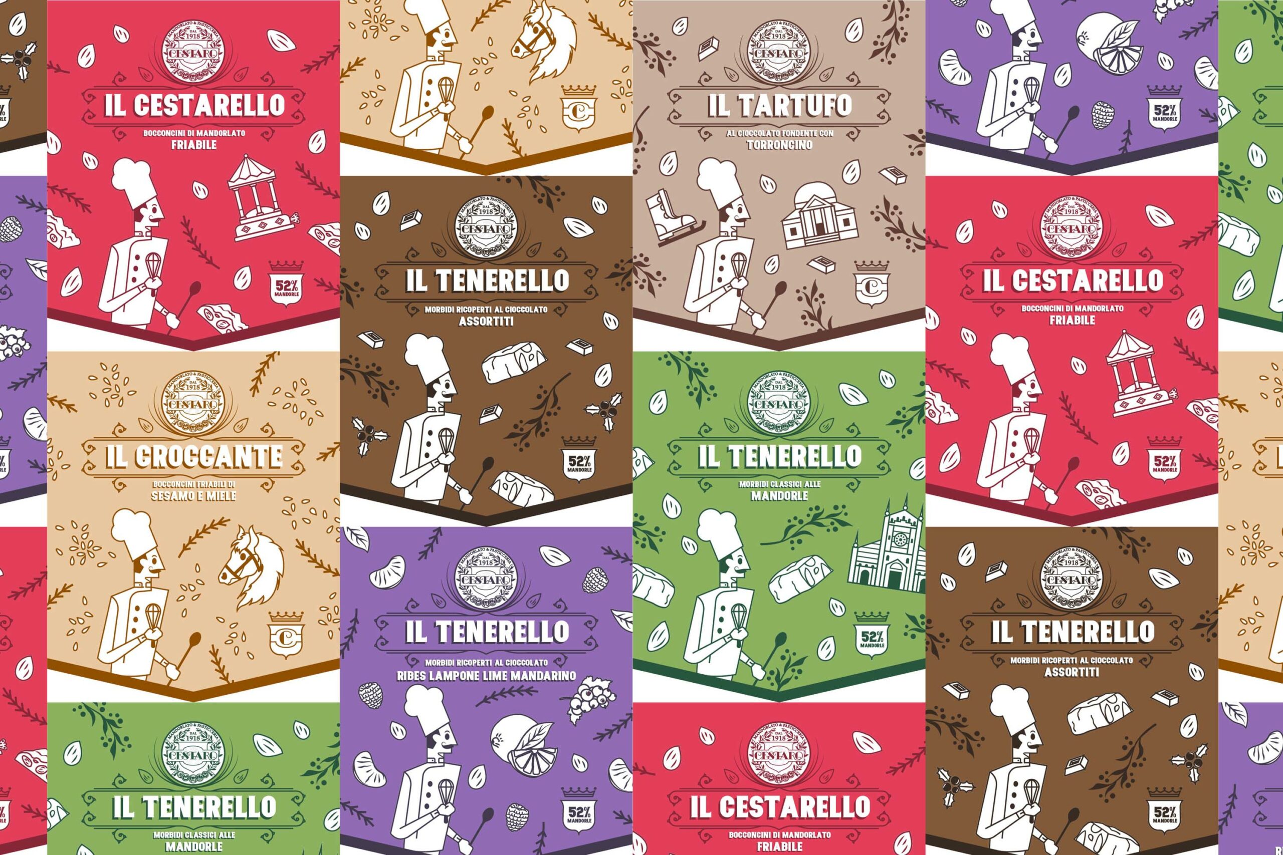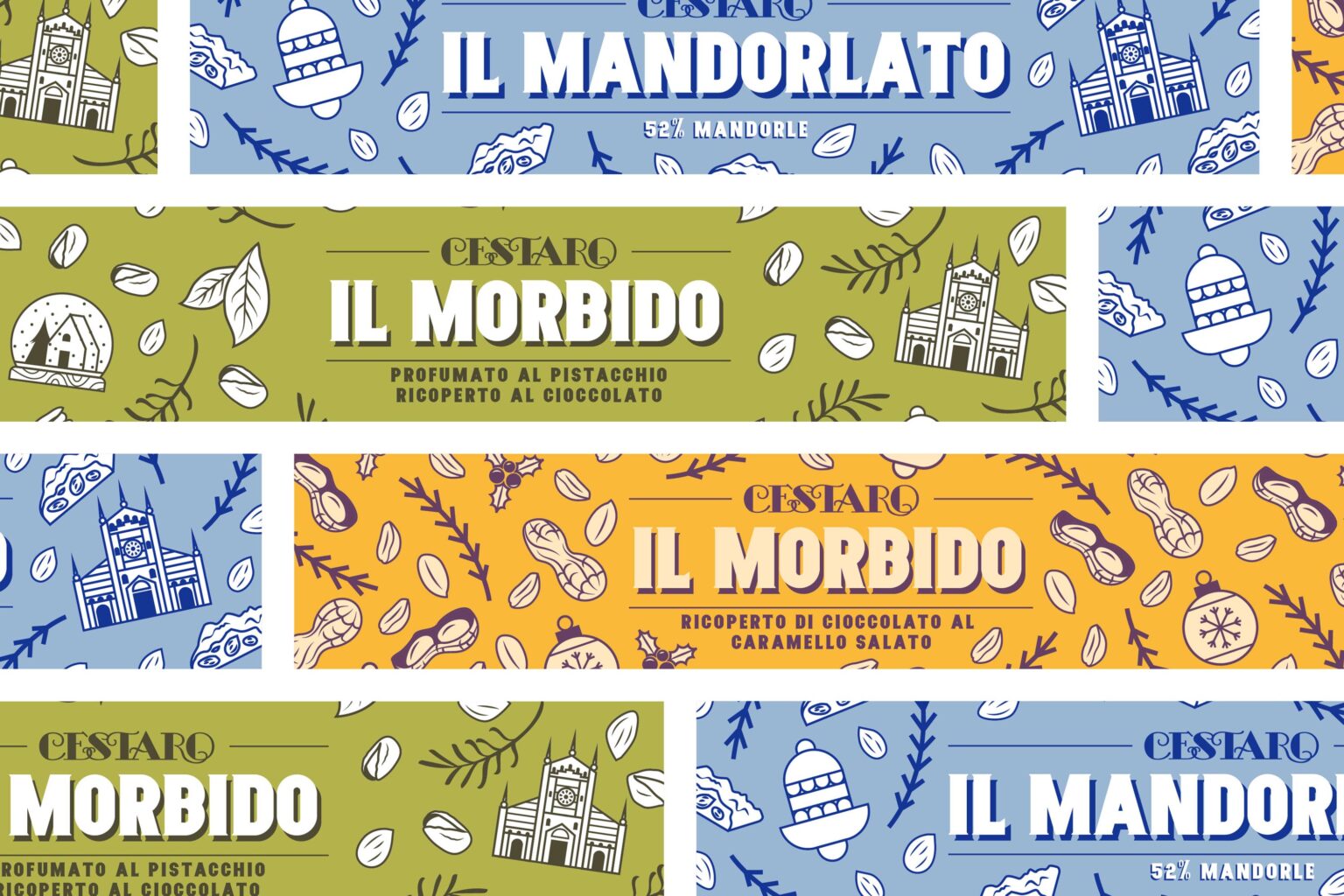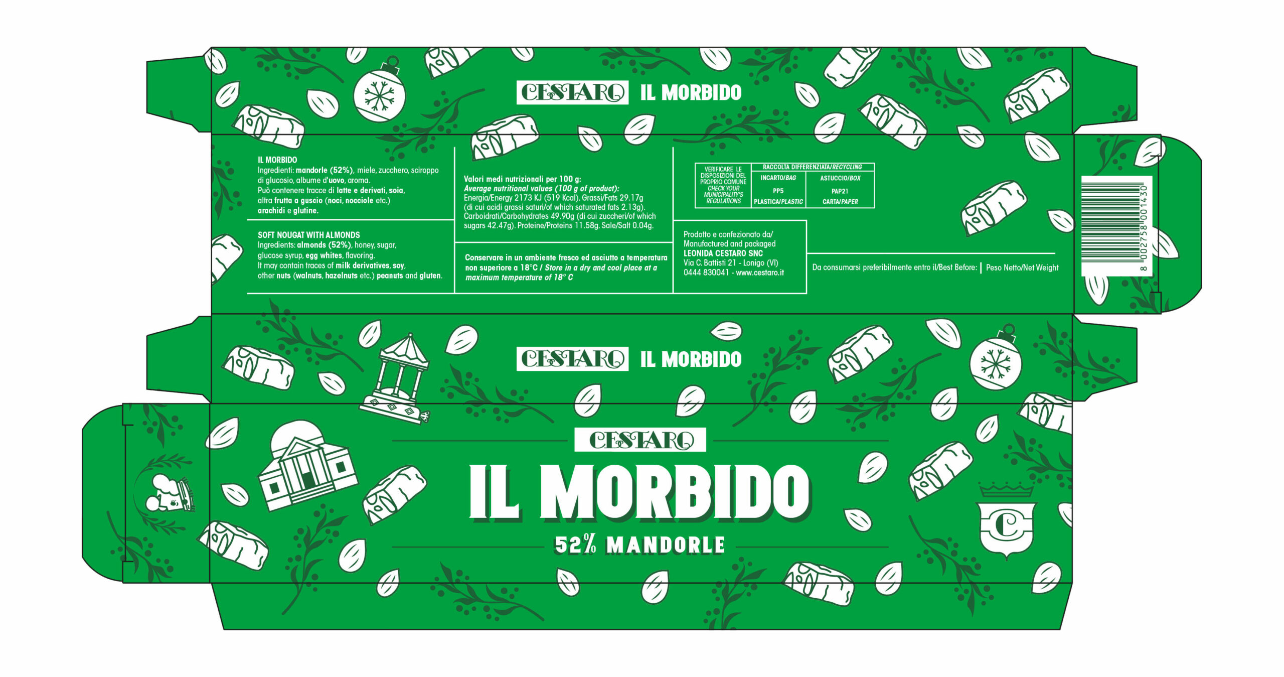 Nel 1918 Angelo Cestaro fondò a Lonigo, in provincia di Vicenza, la ditta produttrice dell’oggi famoso “MANDORLATO CESTARO”. La ricetta di questa specialità dolciaria risale ad un’antica tradizione veneta del 1200, la quale, elaborata in seguito da abili pasticceri, fu in grado di creare un prodotto sempre più prezioso e raffinato. Abbiamo creato un alfabeto di icone che raccontano i tre ingredienti fondamentali di un secolo di storia artigiana: TERRITORIO – HERITAGE STORICO/ARTISTICO – MESTIERE. Il linguaggio ottenuto è versatile, riconoscibile, assemblabile in infinite varianti, di immediata comprensione per il pubblico trasversale a cui fa riferimento.